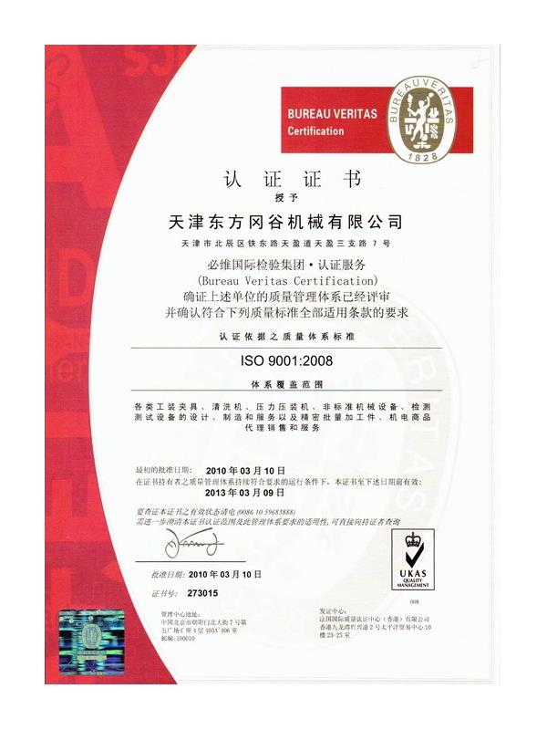 • ISO9001質量體系證書